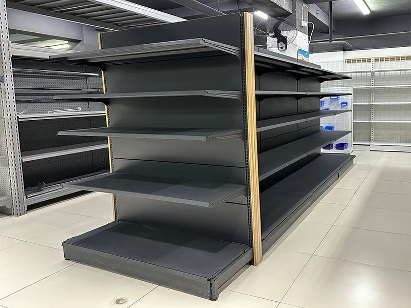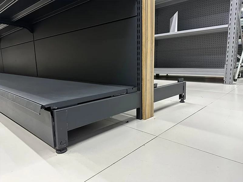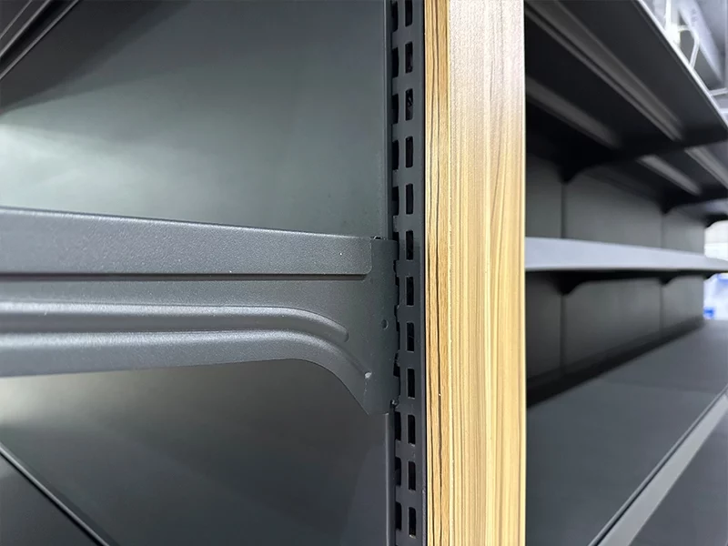The pillars are designed with wood grain, and wooden grain decorative panels are used on regular pillars to give the shelves a more sophisticated feel