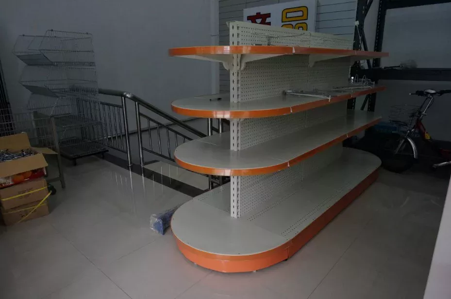 Supermarket shelves for displaying store products.Supermarket shelves are elegant, sturdy, diverse in size, and stylish in design. It can be combined with single-sided, double-sided shelves, and semi-circular gondola shelves. The distance between veneers can be freely modified. The surface treatment is epoxy electrostatic spraying treatment. There are multiple colors to choose from. Corrosion resistance, strong rust resistance, and convenient disassembly and assembly. It has good flexibility and is suitable for composite supermarkets.Supermarket shelves are widely popular in the market for their elegant appearance, sturdy structure, various sizes, and fashionable design.Can be used for combination of single-sided and double-sided shelves, semi-circular pods, standardized production, high stability, and corrosion resistance.The best part is that this shelf can be increased or decreased according to user needs, making it much more flexible than other shelves. You can make it longer or higher without any sharp edges, which makes it safe for your daily use.