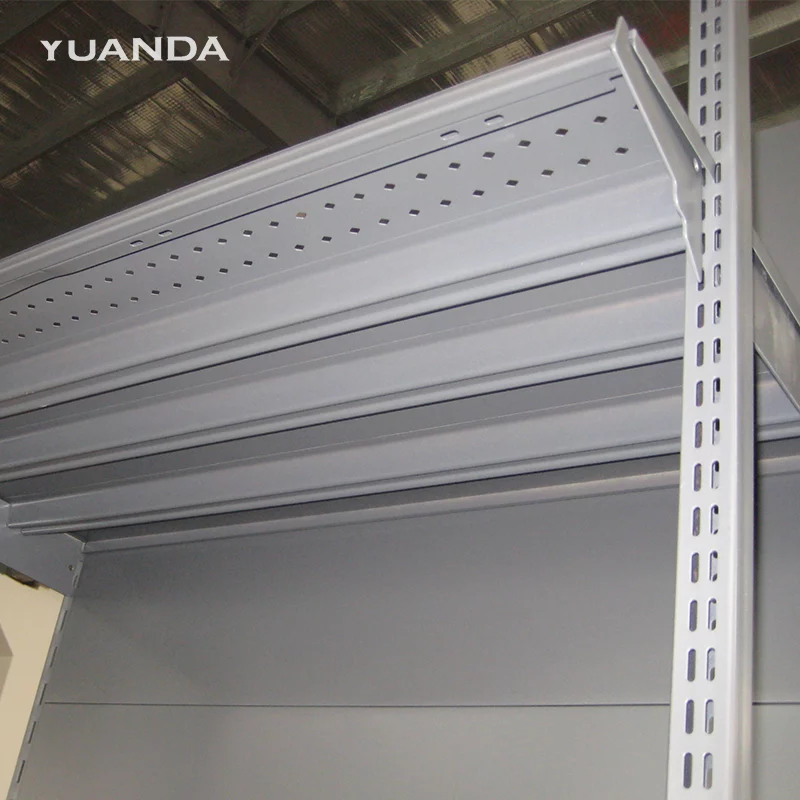 It is a heavy-duty display rack commonly used in chain supermarkets and hypermarkets. This type of supermarket gondola combines storage shelves and store display shelves, making it a fusion of the advantages of two shelves.